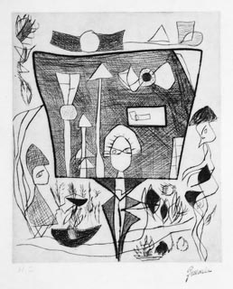 難波田史男:銅版画集『ある日の幻想』より 作品−31 (1971/73)