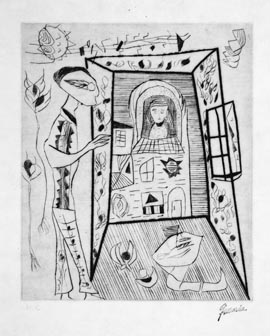 難波田史男:銅版画集『ある日の幻想』より 作品−33 (1972/73)