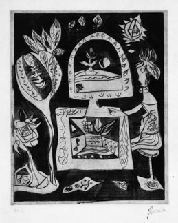難波田史男:銅版画集『ある日の幻想』より 作品−36 (1973)