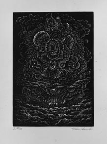 日和崎尊夫:詩画集『緑の導火線』より 5.塔のなかの耳 (1982)