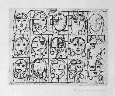 大沼映夫:『アトリエC-126発足30周年記念 オリジナル版画集』より Face・Face・Face (1997)
