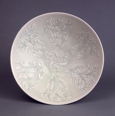 加藤土師萌:青白磁型押草花文鉢 (1960)