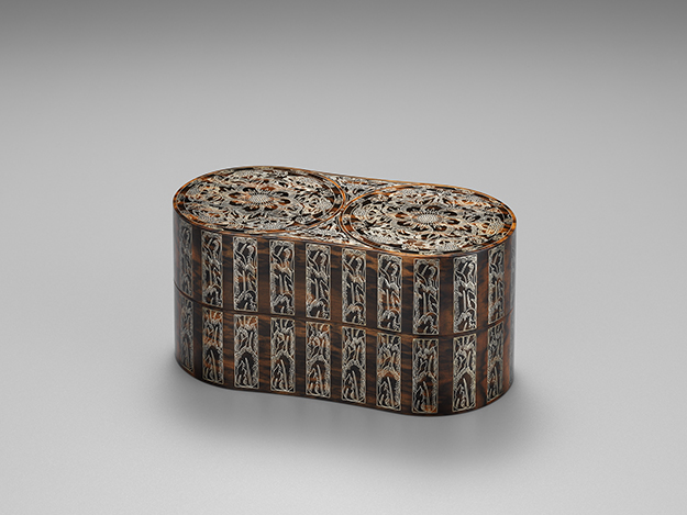 大坂弘道:黒柿蘇芳染拭漆宝相華文嵌荘箱 西華 (2007)