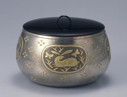 増田三男:金彩銀兎文水指 (1982)