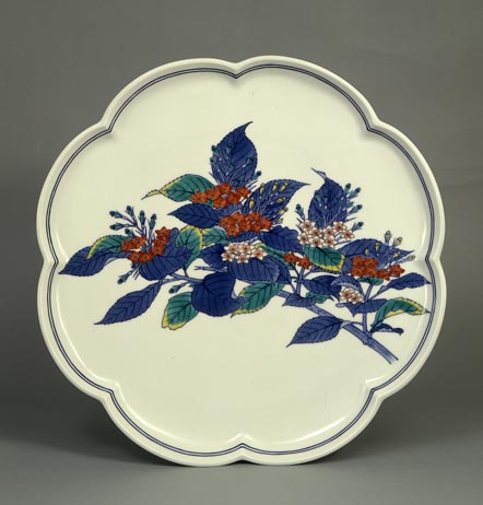 十二代今泉今右衛門:色鍋島うつ木文大皿 (1962)