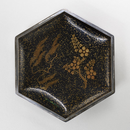 迎田秋悦:稲穂蒔絵六角香合 (1928)
