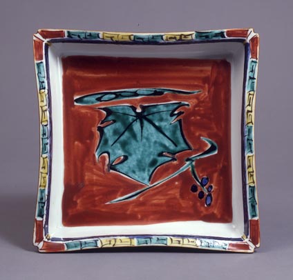 富本憲吉:色絵葡萄文角鉢 (1938)