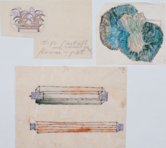 上野=リックス、フェリーツェ・“リチ”:クリップ・デザイン[花弁][花鉢]/ブローチ・デザイン[蕾][クリスタル] (n.d.)