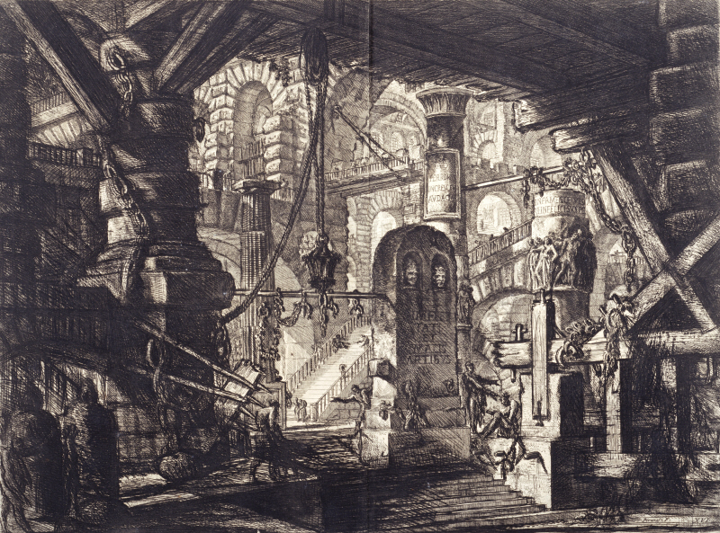 ピラネージ、ジョヴァンニ・バッティスタ:『牢獄』(第2版):(16)鎖のある迫持台 (1760s,mid.-1770s,early (by Robison); 1761,first published (2nd edition))