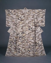 | Kimono, pine tree design, stencil dyeing on crepe silk |