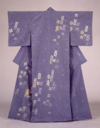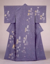 | Kimono, floral pattern embroidered on tsumugi silk |