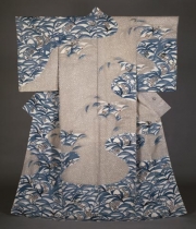 | Kimono, grass design, stencil dyeing on crepe silk |