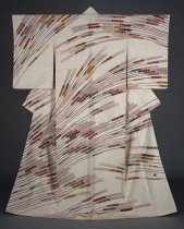 | Kimono, "Barley", yuzen dyeing on tsumugi silk |