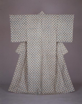 | Kimono, floral pattern, wood-block printing and stencil dyeing on tsumugi silk |