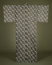 | Yukata, design of pine tree in snowflake circles on a saya-gata (swastika) patterns |