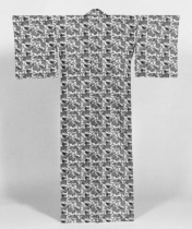 | Yukata, design of chrysanthemums and plum blossoms on a wisteria-hexagon pattern |