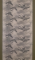| Yukata cloth, design of wild goose on a broken saya-gata (swastika) pattern |