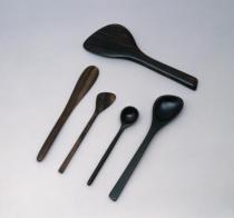 | 昭和62年 木(黒柿)、刳物・20 飯ベラ: L18.8 ; バターナイフ: L18.6 ; スプレッダー: L15.0 ; スプーン: L19.4, L13.8 |