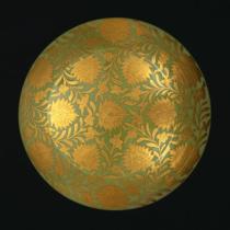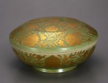 | Round box, gold leaves on overglaze yellowish-green enamel |