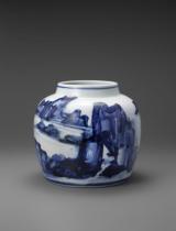 | Jar, rock design, underglaze blue |