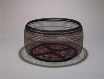 | 共箱;「亀甲透し編輪違椽 花籃」流水居竹雲斎造 白文方印(田辺之印)朱文方印(竹雲斎) |