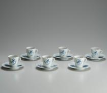 | Cups and Saucers with Chinese Character “Hana(Flower)“, Blue Underglaze |