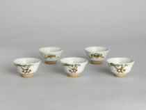 | Teacups with Grass and Flower Design, Overglaze Enamels |