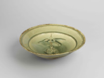 | Bowl with Slip Trailed Bamboo Grass Design with Chinese Character for Happy, Iron Glaze |