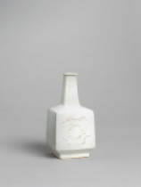 | White Porcelain Square Jar with Slip Trailed Grass and Flower Design |