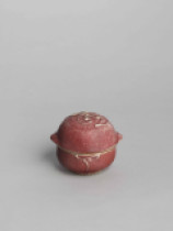 | Food Container with Slip Trailed Flower Design, Copper Red Glaze |