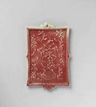 | Ceramic Plaque with Slip Trailed Decoration, Copper Red Glaze |