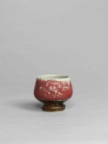 | Tea Bowl with Slip Trailed Flower Design, Copper Red Glaze |