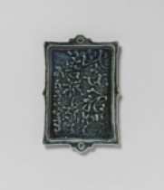| Ceramic Plaque with Slip Trailed Decoration, Cobalt Blue Glaze |