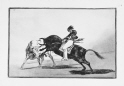 | La Tauromaquia [The Bullfight]: The same Ceballos mounted on another bull breaks short spears in the ring at Madrid |