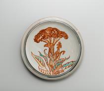 | Ornamental Plate with Cockscomb Design, Overglaze Red |