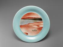 | Large plate, "Mt. Houyan in the Uigur District", celadon with doucai decoration |