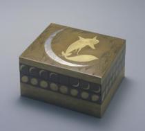| Box, "Zangetsu-koei (motif of fox under moonlight)", gilding on brass |