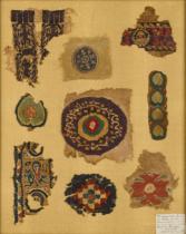 | 6-8世紀 羊毛、麻、コプト織 / 額装 九片 最大: 17.0×16.0 / 最小: 8.5×7.3 |