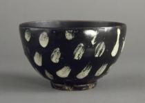 | Tea bowl, "Spring Snow", black glaze with dotted white pattern |