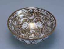 | Tea bowl, figure design, overglaze enamels |