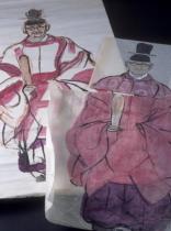 | 昭和45年 紙、墨、筆彩・3 22.0×18.2 ; 43.5×47.0 ; 80.0×41.3 |