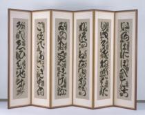 | Six-panel folding screen, spring green i-ro-ha text motif |