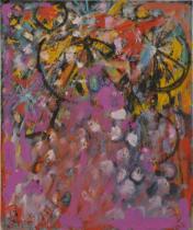 | 未詳 油彩、墨、紙・まくり(画用紙に貼付) 44.9×37.5 |