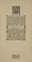 | ウィーン工房 | 第1回「食卓展」オープニング招待状 | c.1905 | 資料 | 京都国立近代美術館 |