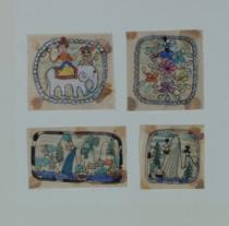 | 制作年不詳 水彩、銀彩、インク、鉛筆、紙 左上:3.6×4.0、右上:3.7×3.6、左下:3.0×4.6、右下:3.0×3.0(台紙1:12.0×12.0、台紙2:19.3×21.0)、マット:14.0×17.0 |