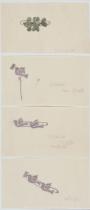| 制作年不詳 水彩、銀彩、インク、鉛筆、紙 LDA-07:7.0×13.0、LDA-08:7.2×12.9、LDA-09:7.1×12.9、LDA-10:7.2×12.9(台紙:34.9×17.8)、マット:14×17 |