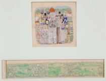 | 昭和25頃 水彩、銀彩、インク、鉛筆、紙・額 10.1×9.7、6.0×21.1(台紙:18.0×21.0) |