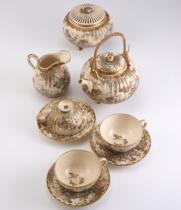 | Meiji–Taisho Period (1868-1926) stoneware teapot: 15.5×13.5×11.5 / sugar bowl: 9.5×8.0×8.0 / milk pitcher: 10.0×9.3×9.3 / cup: 4.1×10.0×8.5 (each) / saucer:1.6×11.0×11.0 (each) |