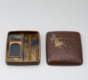 | Basketry Inkstone Box with Geese Design, Maki-e |