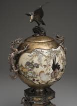| Ornamental Container with Design of Birds and Flowers, Maki-e, Shibayama-zaiku |